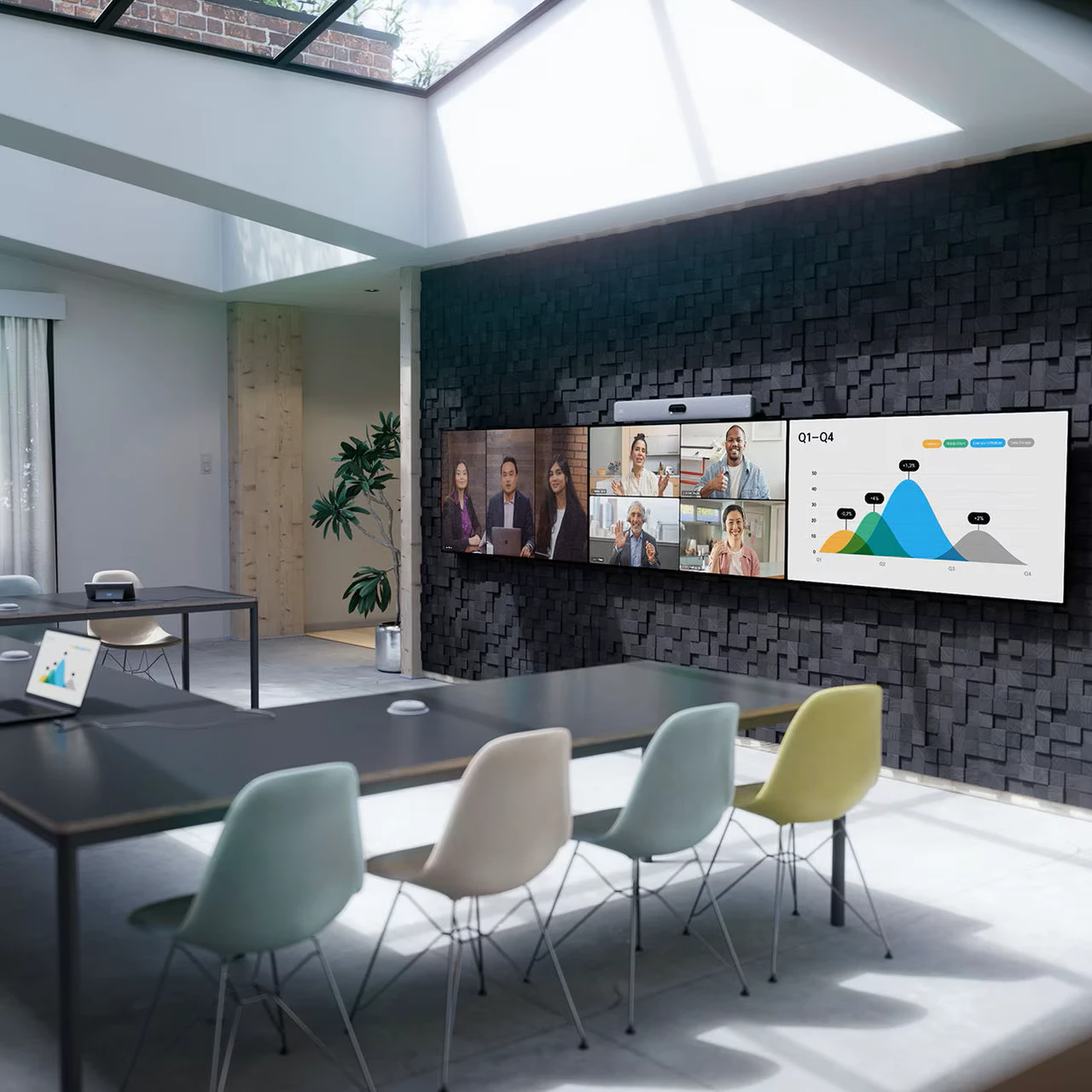 - 适用于各类规模组织的会议室 适用于小型会议室至大型会议厅,支持配备智能音频系统的高清4K视频会议。